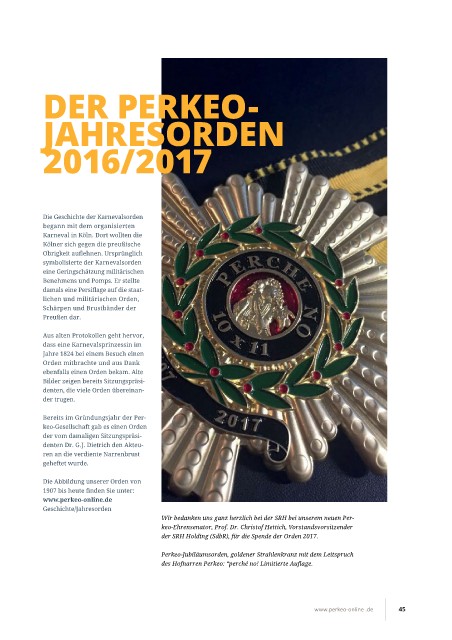 der SRH Holding (SdbR), für die Spende der Orden 2017.