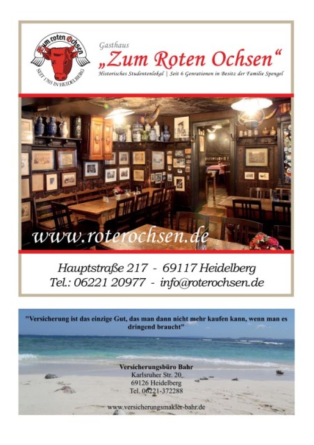 Gasthaus „Zum Roten Ochsen“Zum Roten Ochsen“ „ Historisches Studentenlokal | Seit 6 Genrationen in Besitz der Familie Spengel www.roterochsen.de Hauptstraße 217 - 69117 Heidelberg Tel.: 06221 20977 - info@roterochsen.de