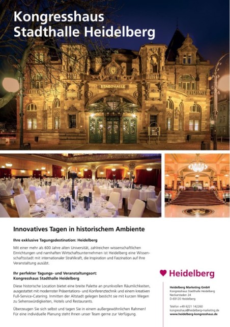 Überzeugen Sie sich selbst und tagen Sie in einem außergewöhnlichen Rahmen! kongresshaus@heidelberg-marketing.de