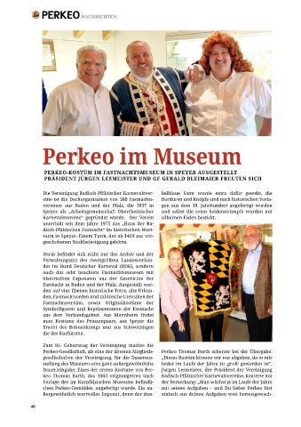 Dauerleihgabe. Eines der ersten Kostüme von Per- Jürgen Lesmeister, der Präsident der Vereinigung