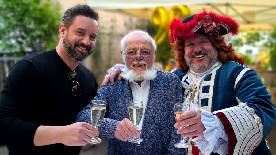 Ein ganz besonderer Tag für eine ganz besondere Persönlichkeit: Am gestrigen Abend feierte Reinhold „Heiner“ Pfeifer seinen 90. Geburtstag – und sein Zuhause in der Beethovenstraße 13 wurde dabei zum Treffpunkt zahlreicher Freunde, Weggefährten und Fastnachter. Ganz im Sinne des Jubilars herrschte ein herzliches Kommen und Gehen – ein echtes „Stelldichein“, wie man es sich für eine solche Persönlichkeit nur wünschen kann. Bereits am Nachmittag trafen die ersten Gratulanten ein, um Heiner die Ehre zu erweisen. Unter ihnen auch der Oberbürgermeister von Leimen, John Ehret, der persönlich seine Glückwünsche überbrachte und damit die große Wertschätzung für das Lebenswerk des Jubilars unterstrich. Auch der Vizepräsident der Perkeo-Gesellschaft, Daniel Schlick, gratulierte und überreichte im Namen der Perkeo-Gesellschaft einen großen Geschenkkorb mit Piccolos.