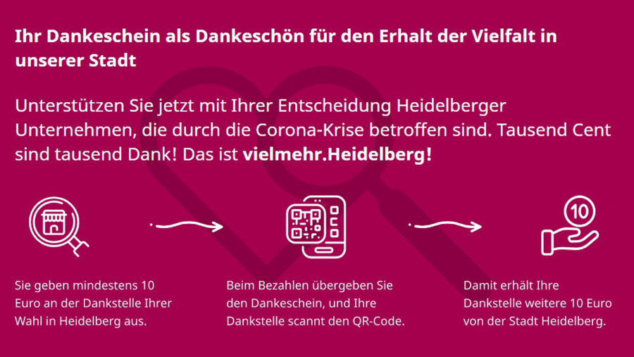 Machen Sie mit und helfen Sie uns in der Corona-Krise: Mit dem neuen „Dankeschein“ der Stadt Heidelberg können Heidelbergerinnen und Heidelberger jetzt ganz schnell und einfach helfen.