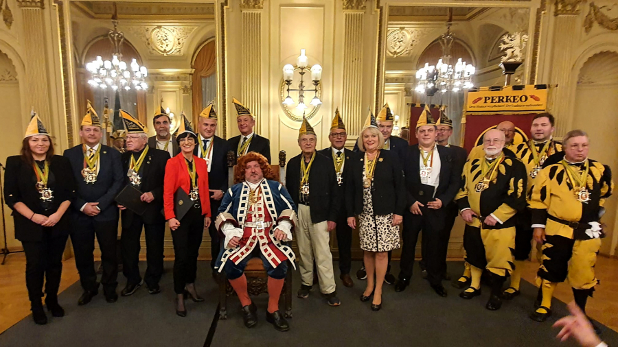 Natürlich regnete es ferner Verdienstorden der Perkeo-Gesellschaft. So gab es Gold mit Eichenlaub für den 95-jährigen CDU-Altstadtrat Heinz Reutlinger, ebenso für Dietmar Heising, Roland Münch und Heinz Sauter. Die silberne Nadel heftete Barth Manfred Benz ans Revers und Bronze ging an CDU-Stadtrat Martin Ehrbar, Thomas Fischer und Wolfgang Rössy. Ehrensenatoren wurden Ahmet Pekkip, der Bürgermeister von Dossenheim David Faulhaber, Marius Schiemer, Andreas Bante und Bernhard Gauß. Zu Lustigen Rätinnen kürte er Sozialbürgermeisterin Stefanie Jansen und Nadine Hülden.